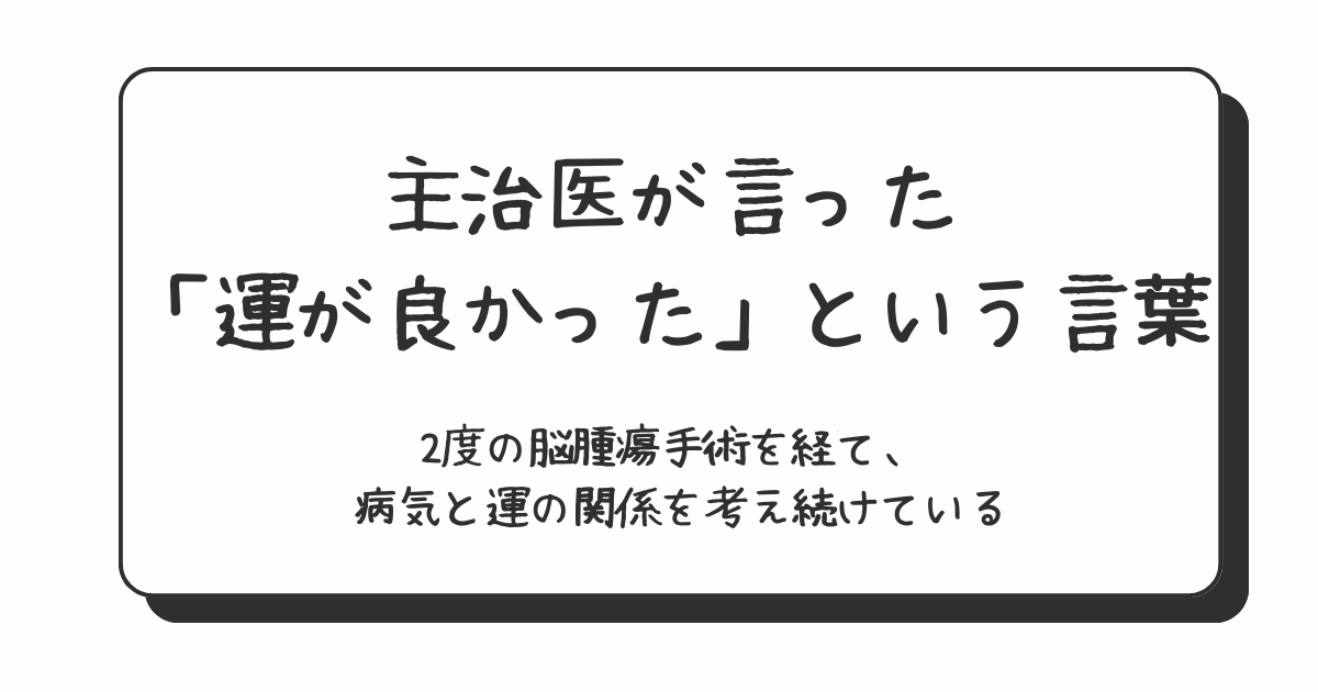 そもそも、若くして2度も脳腫瘍になること自体は、紛れもなく「不運」です。